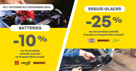 Promo entretien auto : Batteries et Essuie-glaces Du 6 octobre au 15 novembre 2025, profitez de la promotion Entretien auto hiver […]